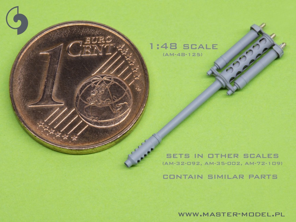 The set includes turned brass tail antenna, barrel, Pitot Tubes, resin muzzle brake and PE parts.