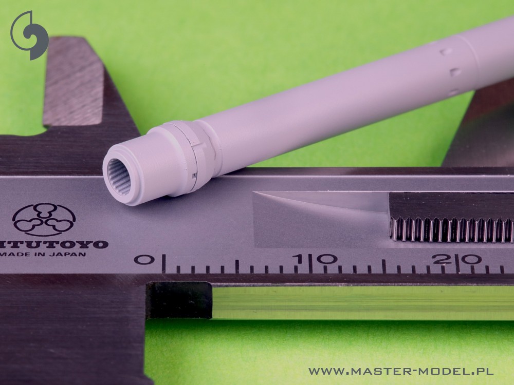 The set includes turned aluminum gun barrel with 3D printed muzzle details (integrated with the metal barrel).